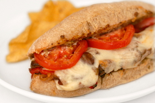 I LOVE roasted veggie sandwiches, but this sub looks even better! I love how it’s reminiscent of a cheesesteak, but with better flavors. And that roll you have it on looks divine! 🙂