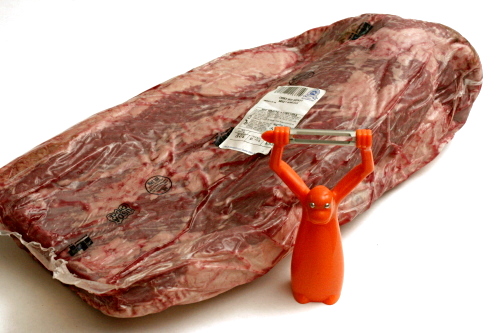 Can someone explain to me why the only way I can buy brisket in my tiny town is to get the whole brisket? (And why are there no dried currants? Or mini-cupcake liners?) I didn’t even know what a whole brisket looked like before last month. First off, it’s huge. Who needs to buy 15 pounds of meat at a time? Second, half of that 15 pounds is fat. I actually weighed the fat after I spent an entire hour aaaargh! trimming it off the brisket. An inch-thick layer of fat, yum.