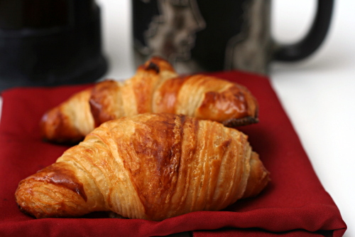 Everyone who is afraid of all the butter – My trick for limiting myself to one croissant is to freeze the dough after the croissants are shaped. Then I let them defrost and rise overnight and bake them when I wake up. I only defrost two at a time, so unless I eat Dave’s before he wakes up and conveniently forget to tell him that there were croissants, I’m stuck with just one.
